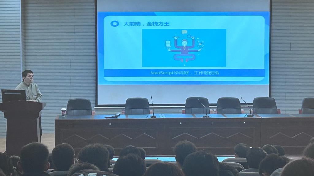 叶冰结合美团外卖等就业新闻,对高校毕业生在计算机行业中的就业现状以及未来行业发展趋势进行了分析。他从大数据发展阶段、前后端研发区别、人工智能发展趋势、大学生职业生涯规划等四个方面阐述了尽早树立就业意识,刻意培养相关就业技能的重要性。他从学业规划、就业规划、学科竞赛、项目实践、简历制作等方面,结合自身的从业经验,与同学们分享了规避就业陷阱、提升就业技能的具体途径。在答疑环节中,叶冰耐心解答了同学们提出的互联网行业相关问题,现场氛围热烈。