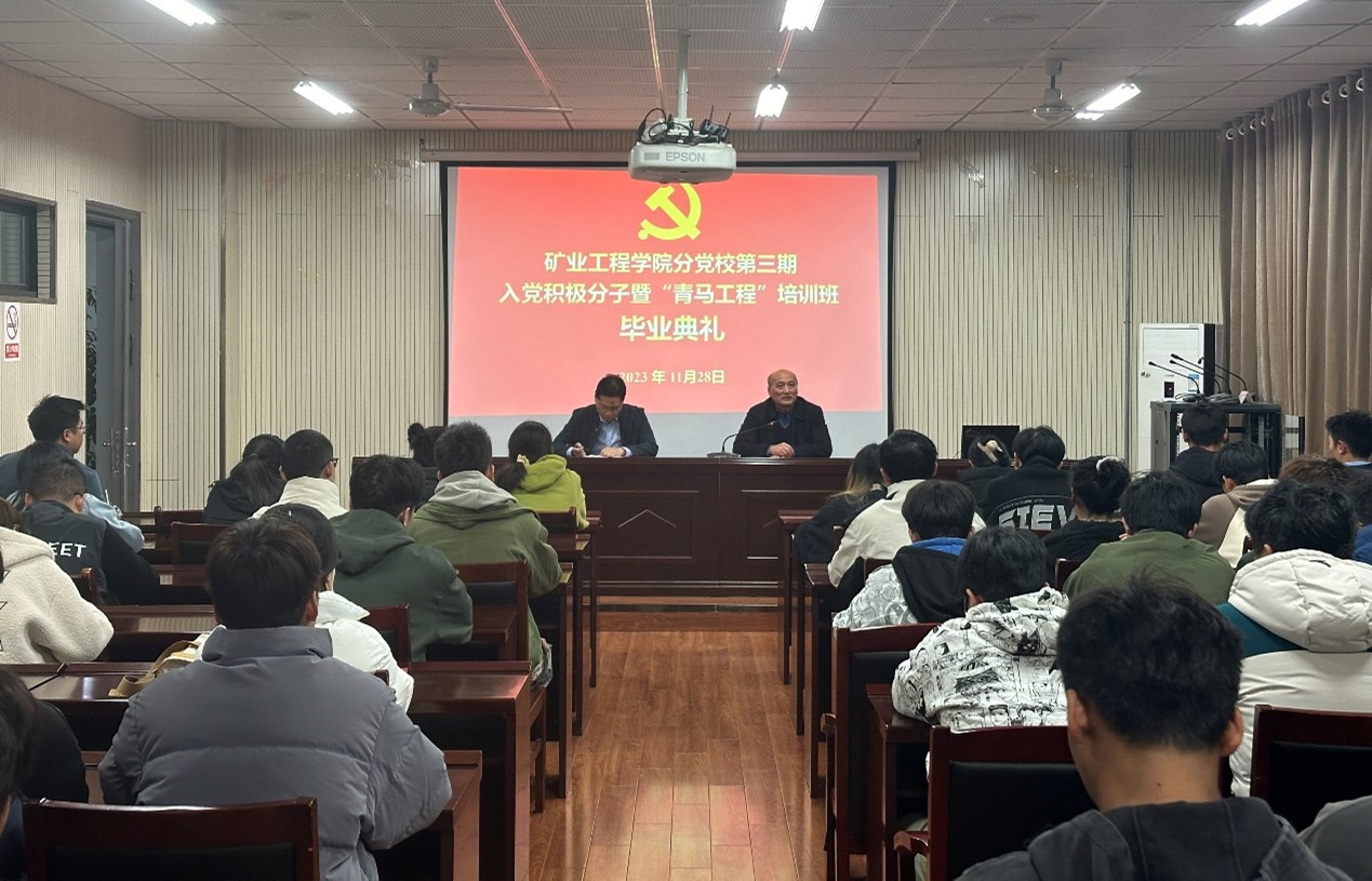 11月28日下午,矿业工程学院在宁远楼A410会议室举办2023年入党积极分子暨“青马工程”培训班结业仪式,学院党委书记盛鹏飞、党委副书记田秋实、各党支部书记及培训班学员代表80余人参加。结业仪式由田秋实主持。
