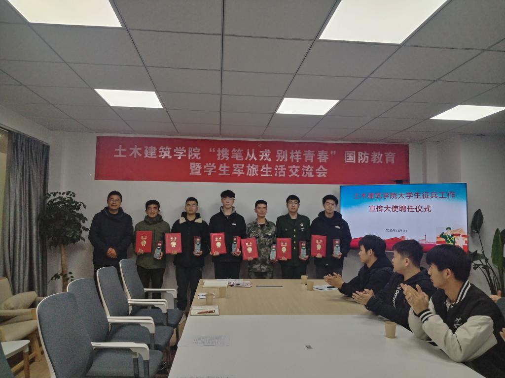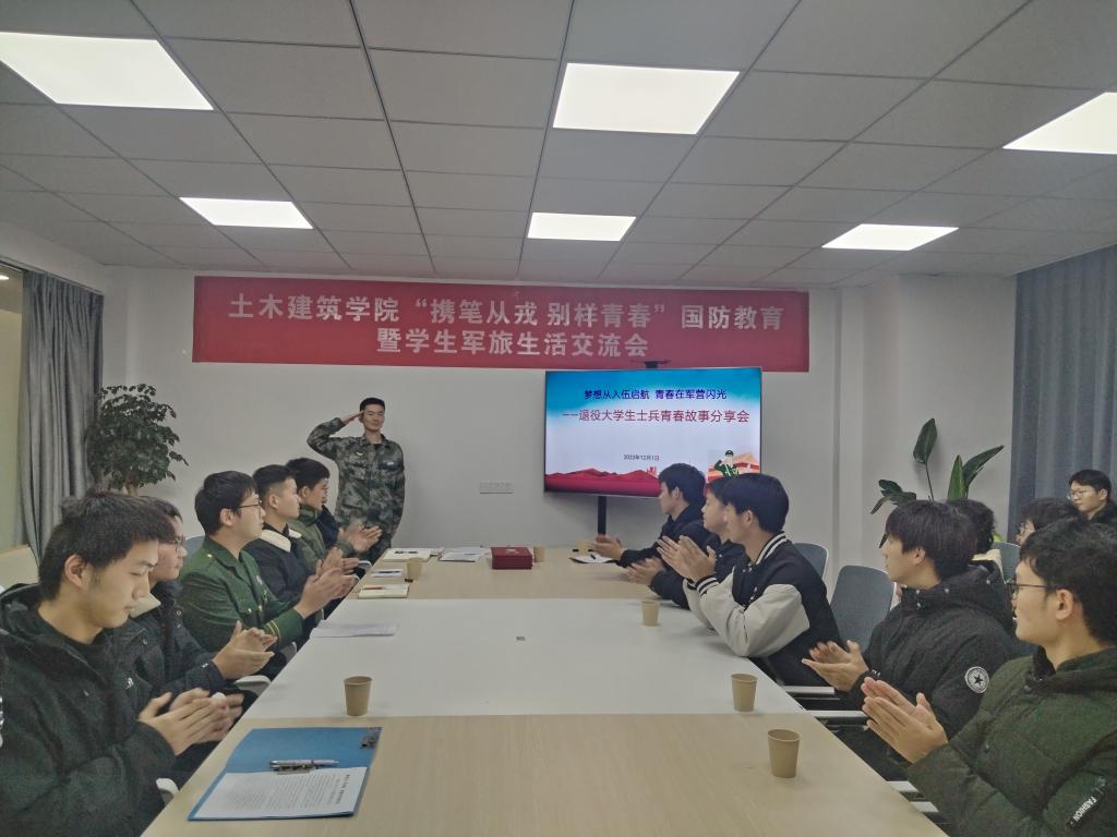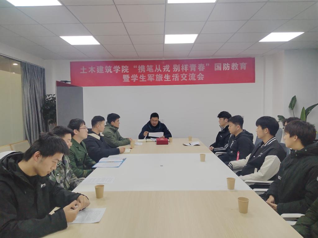 为扎实做好学院征兵工作,宣传学校给予入伍大学生的优抚政策,更好服务于有志报名参军学生,针对性地帮助退役大学生解决学习、生活等方面遇到的困惑和困难,12月1日下午,土木建筑学院在校“一站式”学生社区开展“携笔从戎 别样青春”国防教育暨学生军旅生活交流会,学院党委副书记张向林、学院征兵联系人、退役大学生以及部分有入伍意愿的2024届毕业生等共计30余人参加了会议。