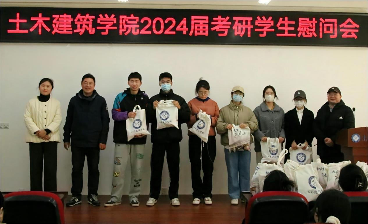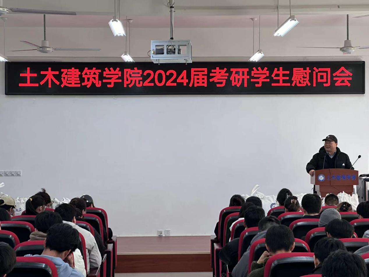 2024届考研进入冲刺阶段,为有效缓解广大备考学子的压力,激发同学们的斗志和信心,土木建筑学院于12月5日在求是楼南227会议室开展考研学子慰问活动。学院领导、毕业班辅导员以及120余位考研学子代表共同参加了此次活动。活动由学院党委副书记张向林主持。