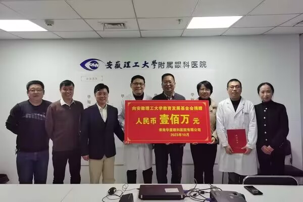 会后,医学院向安徽理工大学附属眼科医院赠捐献牌匾和捐赠证书。