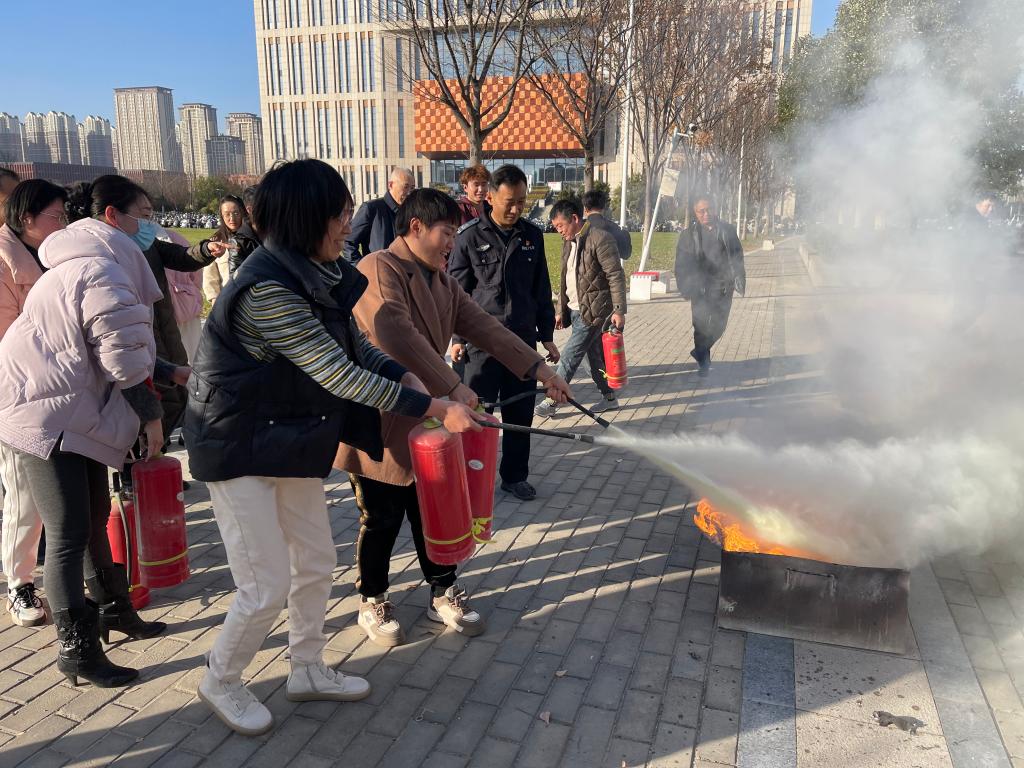 观看结束后,保卫处老师详细讲解了灭火器的使用方法及实际操作,大家在专业老师的指导下练习使用灭火器。