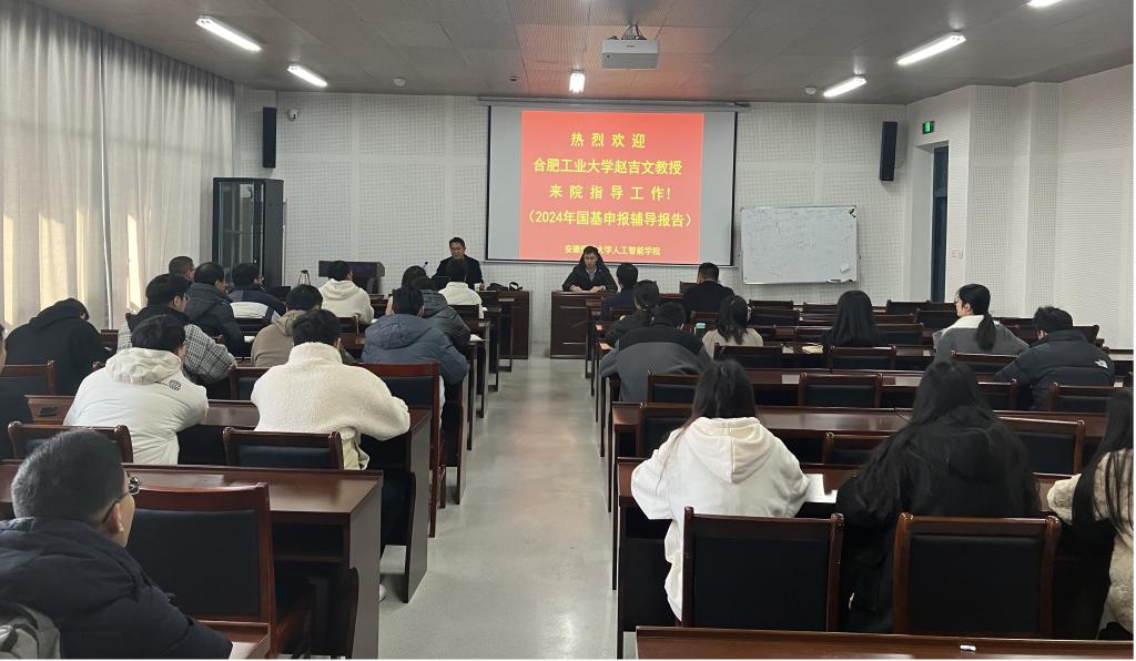为推进国家自然科学基金申报工作,12月7日,人工智能学院在明德楼208学术报告厅召开2024年国家自然科学基金申报辅导会。合肥工业大学赵吉文教授受邀为青年教师作国家自然科学基金申报辅导报告,会议由学院副院长凌六一主持,学院近30位青年教师参加了会议。