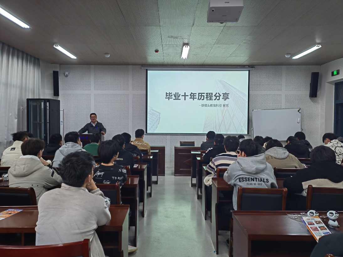 会后,学院邀请了合肥铁榔头教育科技有限公司创始人兼CEO董旭为2024届毕业生作《毕业十年历程》的求职创业辅导报告并组织专场招聘会。