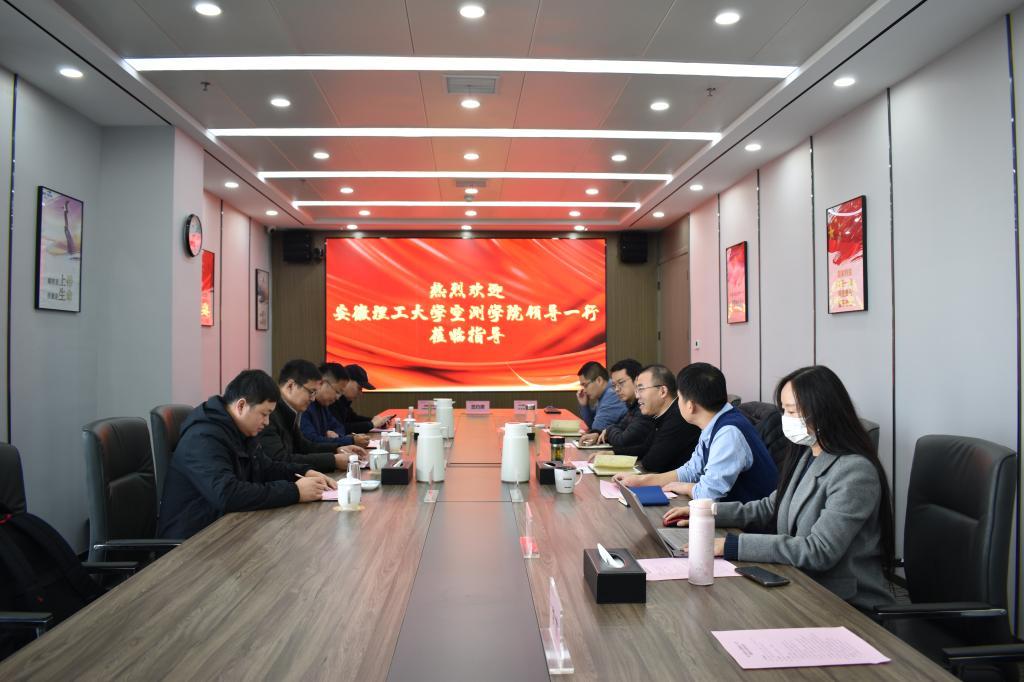 在北方雷科(安徽)科技有限公司,该公司董事长李传军,行业事业部总经理谷瑞军,技术、运营、市场部负责人,智慧矿山项目经理李震等出席了会议。李传军对学院一行的到来表示热烈欢迎,并介绍了公司的基本情况,他表示公司正处于快速发展的关键时期,对人才、技术、科技等方面有着迫切需求,未来双方在协同创新、科技攻关、知识产权转化、产教融合等方面具有广阔的合作空间。赵兴旺介绍了学校和学院近几年取得的成就、办学目标、学科专业发展、科研创新、学生就业等方面的基本情况。校企双方表示要以此为契机,在人才培养、科研合作等方面加强产学研合作。