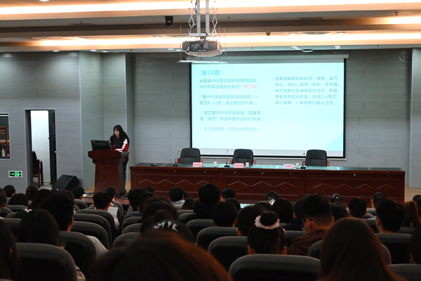 为提高青年学生对艾滋病及艾滋病防护的认识,增强科学防治技能,12月8日,医学院在校图书馆报告厅举办以“珍爱生命,预防艾滋”为主题的预防艾滋病健康知识专题讲座,主讲人为淮南市疾控中心艾滋病防治科王文婷,现场共有150余名学生参加讲座。