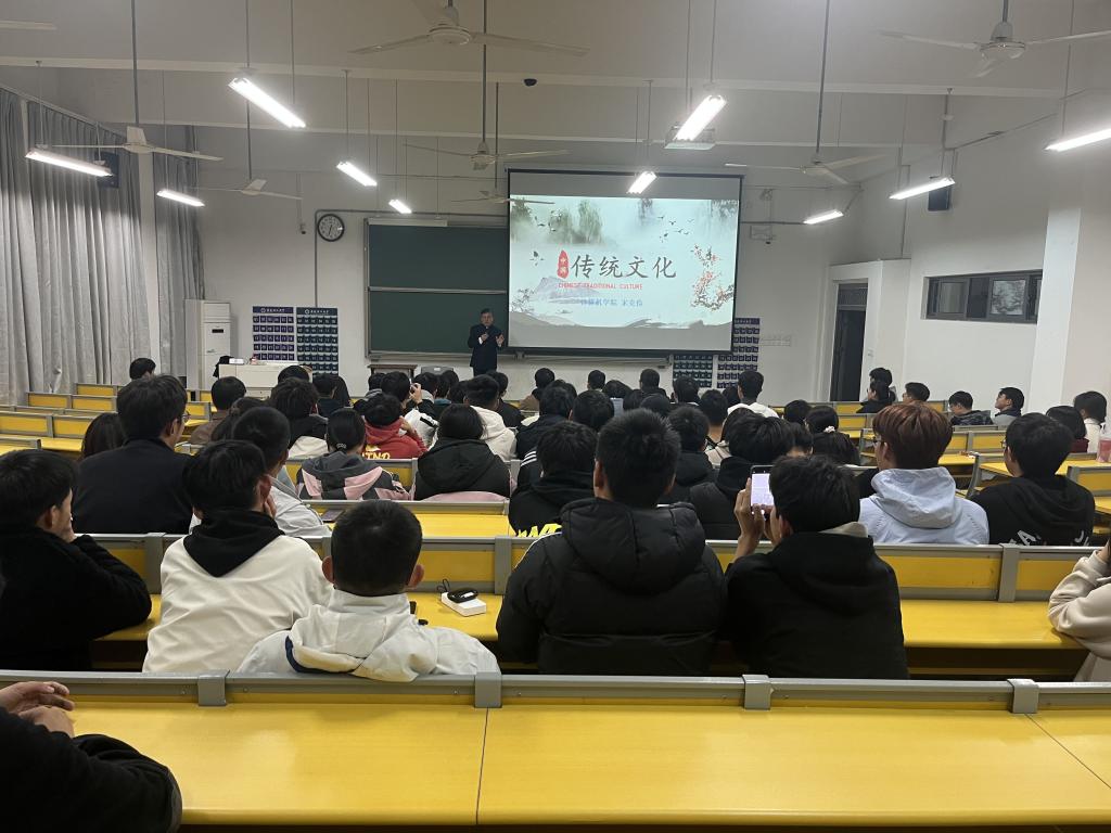 为进一步深入学习宣传贯彻习近平文化思想,弘扬中华优秀传统文化,帮助大学生树立正确的价值观,12月8日晚,计算机科学与工程学院关工委副主任宋克俭为2023级本科生作弘扬中华传统文化励志报告会,学院150余名师生参加了报告会。