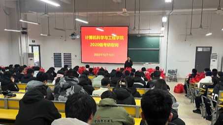 为给2024届考研学子加油鼓劲,12月12日上午,计算机学院在天工103开展考研慰问活动。学院党委书记王永祥等院领导、毕业班辅导员以及2020级200余名考研学生代表参与了活动。