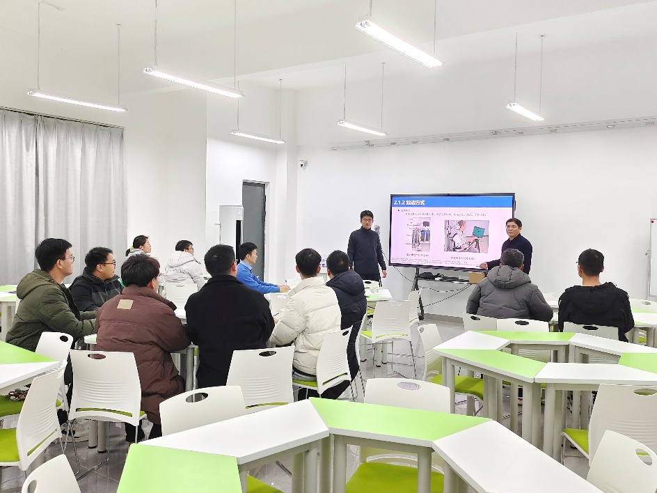在本次教学实践活动中,王成军教授以康复机器人为主题,向在场的师生们讲授学科前沿知识,青年教师俞志鹏积极参与试讲。教学过程中,王成军教授对俞志鹏老师的讲课方式进行了精心指导,并对试讲内容进行补充与拓展,通过启发式和研讨式教学引导在场师生主动思考,充分激发学生探索与创新的积极性,现场碰撞出7个细化研究方向和5个拟进一步探讨的学术问题。