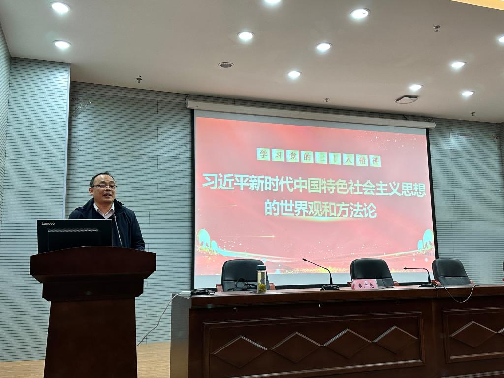 开班式结束后,马克思主义学院院长朱广亮教授作辅导报告。从习近平新时代中国特色社会主义思想的实践依据、科学内涵、丰富发展三个方面,详细解读了“六个必须坚持”“三大时代课题”“十个明确”等重要理论。辅导报告深入浅出,逻辑清晰,有助于学院师生党员在今后的学习工作中,把习近平新时代中国特色社会主义思想转化为坚定理想、锤炼党性和指导实践、推动工作学习的强大力量。