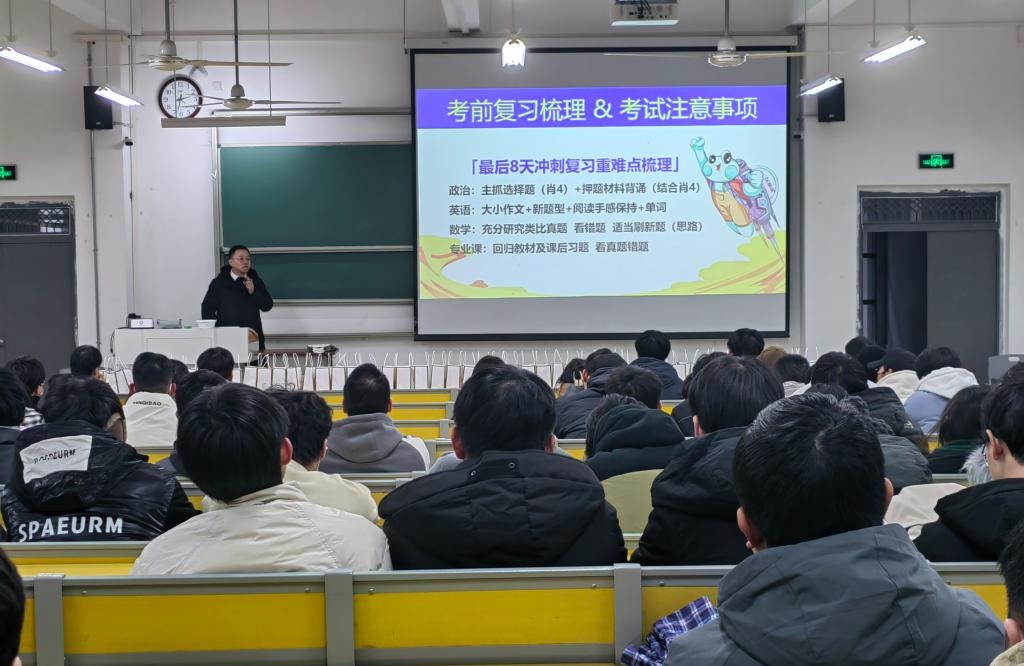 活动最后,学院邀请了考研辅导老师为2024届考研学子做考前准备和应试技巧方面的辅导,组织全体参会学生进行“2024考研决胜誓师”,宣誓现场气氛热烈,铮铮誓言响彻会场,备考学子们信心满满,向着考研发起了最后的“冲锋”。