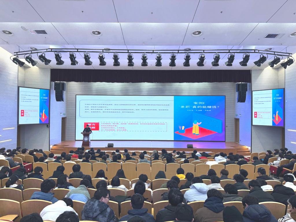 为提高大学生防诈骗意识和防诈骗能力,保障大学生财产安全,12月18日晚,力学与光电物理学院联合春晓街派出所在舜耕会堂开展防诈安全专题讲座。春晓街派出所王柳、李耀鹏警官,学院辅导员,2023级全体新生共计300余人参加讲座。