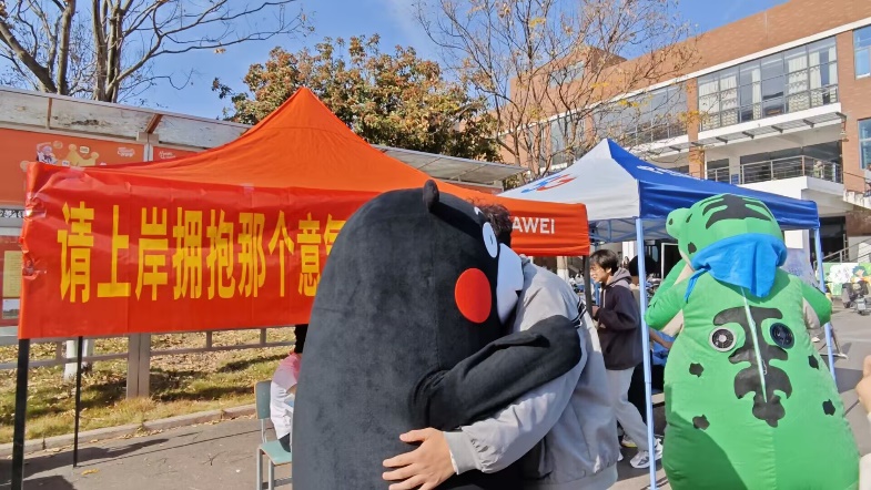 12月9日至10日,学院文体艺术中心成员在仁苑食堂门口扮演玩偶,以“玩偶抱一抱”的暖心形式帮助考研学子释放压力。也有许多同学亲手制作了木叶手工,以此表达他们对考研学子的真挚祝福。