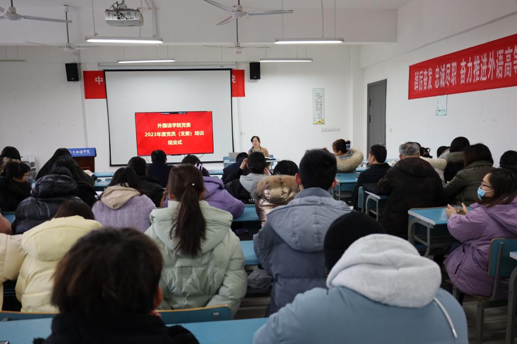 为持续深入推进学习贯彻习近平新时代中国特色社会主义思想主题教育,引导全院党员衷心拥护“两个确立”,忠诚践行“两个维护”,充分发挥党员在学院改革发展中的先锋模范作用,外国语学院党委自11月3日起开展2023年度党员(支委)培训工作,全院150名师生党员参加培训,日前已圆满完成各项培训任务。