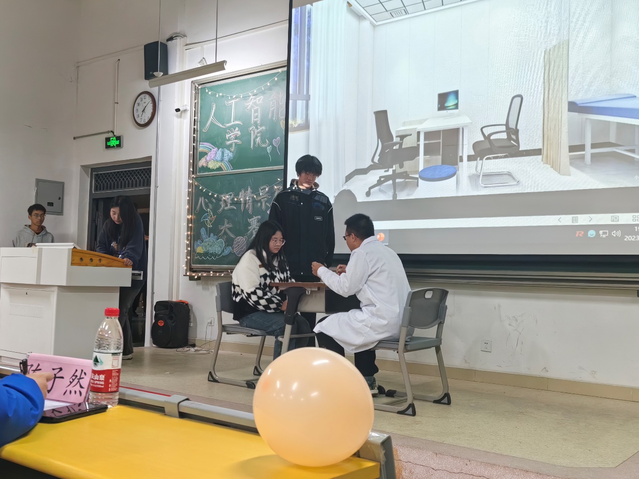 为积极宣传心理健康知识,丰富学生的文化生活,营造良好的心理文化氛围,培养学生理性平和、积极向上的健康心态,11月23日晚,学院在明理306教室举办了主题为“阳光倾洒安理 美好常驻心灵”的2023级新生心理情景剧比赛。经过激烈的角逐,最终人工智能23-2班的《一念放下,万般自在》荣获学院一等奖,并在校赛中荣获一等奖。