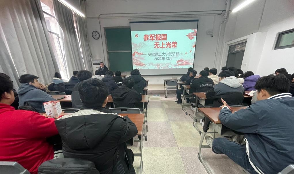 为深入学习贯彻习近平强军思想,进一步落实征兵工作相关要求,12月27日中午,安全学院邀请计算机科学与工程学院党委副书记刘中廷和校武装部王广义老师在天工北105作征兵工作政策宣讲。学院学生工作负责人、辅导员以及2024届毕业生50余人参加宣讲会。
