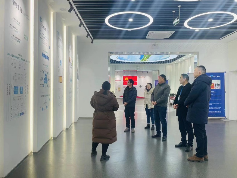 刘启蒙一行参观了企业展厅,深入了解中水三立公司深耕智慧水利行业,在水利信息化、智能调度运行管理、智慧水环境,以及智能传感器、一体化监测站等硬件开发方面取得的优良业绩。