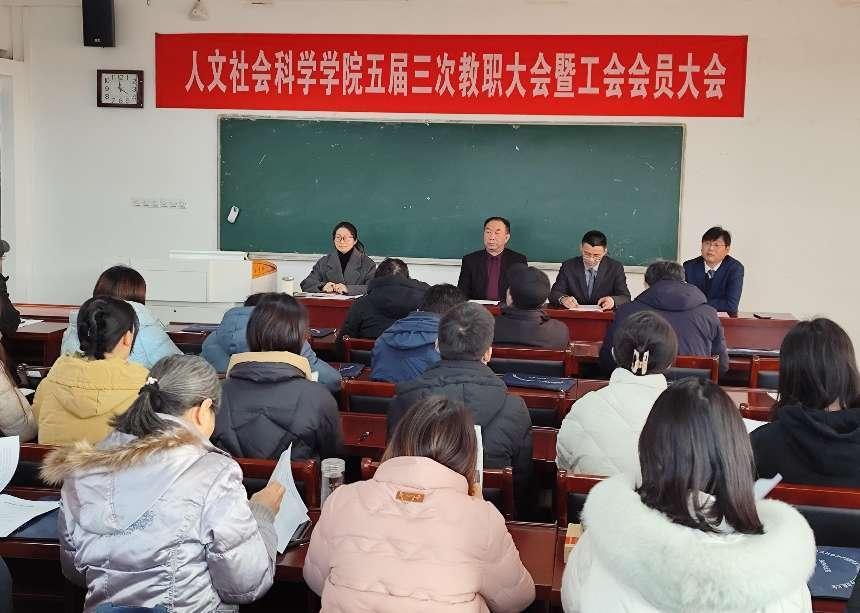 1月11日下午,人文社会科学学院五届三次教职工大会暨工会会员大会在崇智楼A333教室隆重召开,学院领导班子成员、全体教职工参加会议。会议由学院副院长代大为主持。