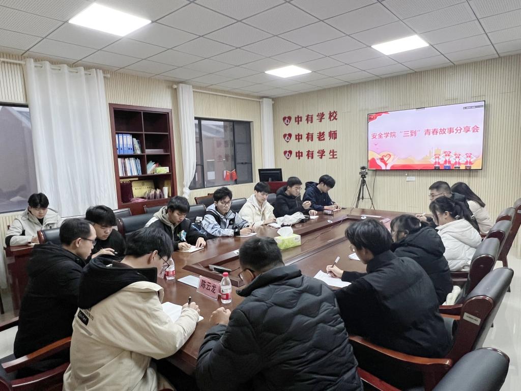 为深入践行社会主义核心价值观,落实“三到”育人理念,通过身边人、身边事教育引导同学们到西部去、到基层去、到祖国最需要的地方去,1月11日晚,安全学院在宁远楼A306通过线上线下相结合的方式举办“三到”青春故事分享会。线上线下各年级学生代表200余人参加分享交流会。