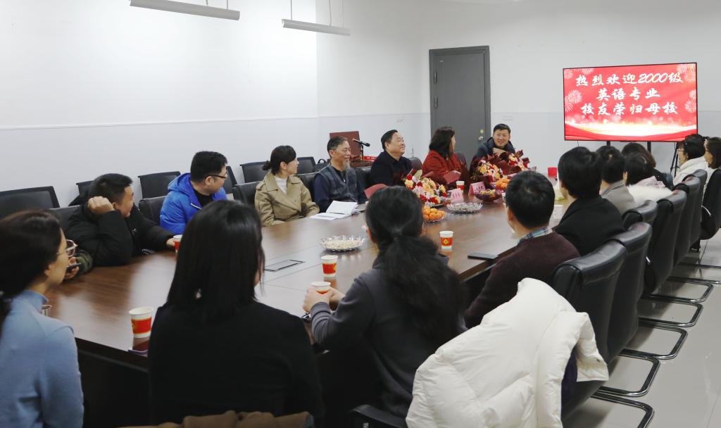 1月14日,外国语学院英语专业1班10余名校友从祖国各地返回母校,参加毕业二十周年聚会。学院在崇智楼B203会议室举办了师生座谈会,学校党委武装部部长、保卫处处长方运纪,外国语学院党委书记程秀霞、党委副书记彭晶等院领导班子成员和束学军、应伟伟等教师代表参加座谈会。座谈会由彭晶主持。