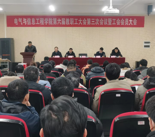 1月19日下午,电气与信息工程学院第六届教职工大会第三次会议暨工会会员大会在励行楼B112学术报告厅召开,学院领导班子成员及全体教职工参会。开幕式由学院副院长、分工会主席欧阳名三主持。
