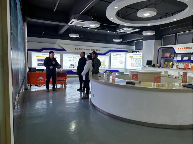 交流会上,王大贤介绍了学校和学院近年来的发展情况和取得的成绩,并就学院人才培养和社会工作专业的转型发展征询意见和建议。汪结胜回忆了在母校的求学经历,感恩母校老师的辛勤培养,介绍了公司的发展历程、主营业务、荣誉资质,并结合智慧养老等业务运营现状对社会工作专业的转型发展提出了建设性意见。在公司展厅内,金波详细介绍了烛光妈妈数字化养老服务体系的建设、运营和服务情况,与会人员就人才招聘、实习实训、学生培养等方面进行了深入研讨。
