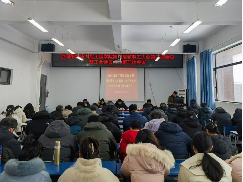 2月22日下午,空间信息与测绘工程学院第四届三次教职工大会暨工会会员大会在求本楼北512报告厅召开,学院领导班子成员、全体教职工参加会议。会议由学院党委书记范洪喜主持。