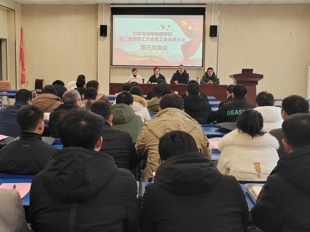 2月28日下午,力学与光电物理学院在明道楼一楼报告厅召开第二届教职工大会暨工会会员大会第三次会议。会议由学院党委书记孙东升主持,学院领导班子成员及全体教职工参加会议。