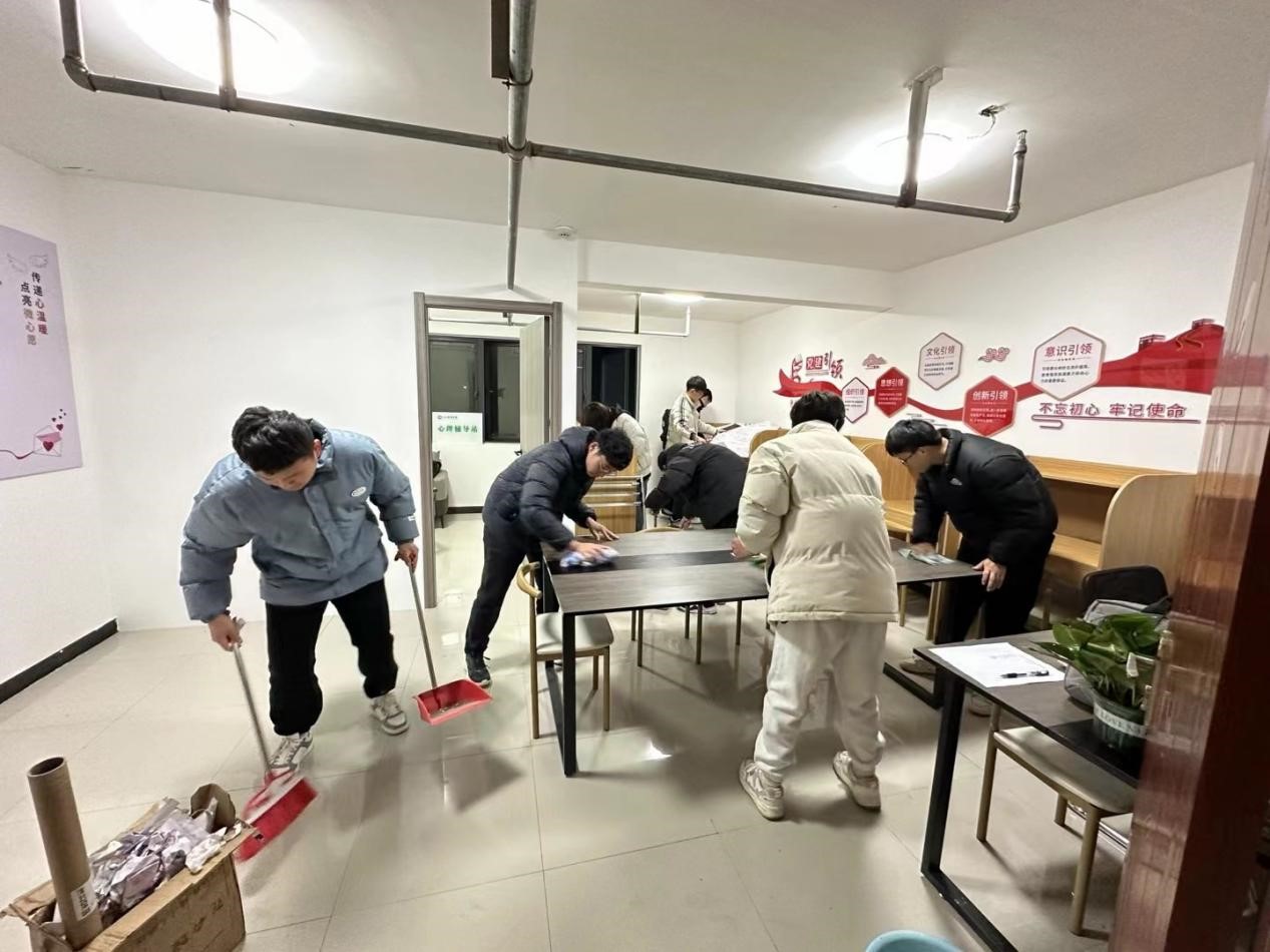 3月4日晚,人工智能学院“一站式”学生社区内一片忙碌景象。“你来扫地擦桌子、我来贴墙纸、他去整理绿萝。”为了给我院广大师生创造一个干净整洁的休闲与研学空间,志愿者们自带工具,有序分工,在社区里认真打扫、悉心装扮,大家欢声乐语、干劲十足地开展学雷锋活动,用自己的实际行动弘扬雷锋精神。经过大家的辛苦努力,“一站式”学生社区面貌焕然一新。