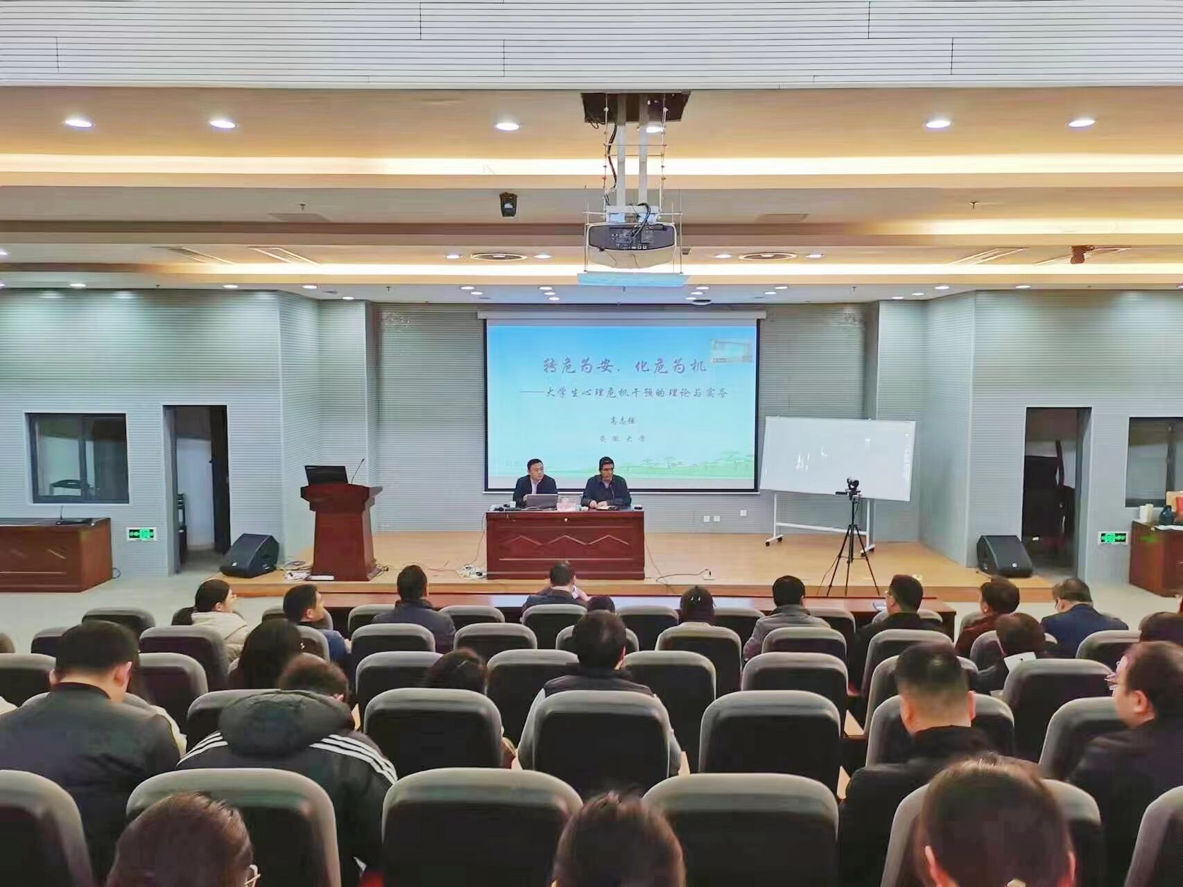 为提升全校学工队伍心理健康教育的整体水平,打造专业化的心理工作队伍,近日,学校邀请安徽省心理咨询学会常务理事、安徽大学应用心理学专业硕士研究生导师高志强博士来校作“大学生心理危机干预的理论与实务”专题讲座,讲座由校党委常委、副校长董雨主持。党委学工部(学生处)全体人员、全校专兼职辅导员参加了本次讲座。