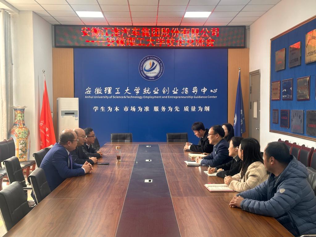 3月15日下午,安徽江淮汽车集团股份有限公司发动机公司党委副书记施勇一行5人来校对接交流,就业创业指导中心、经济与管理学院负责人参加座谈交流。