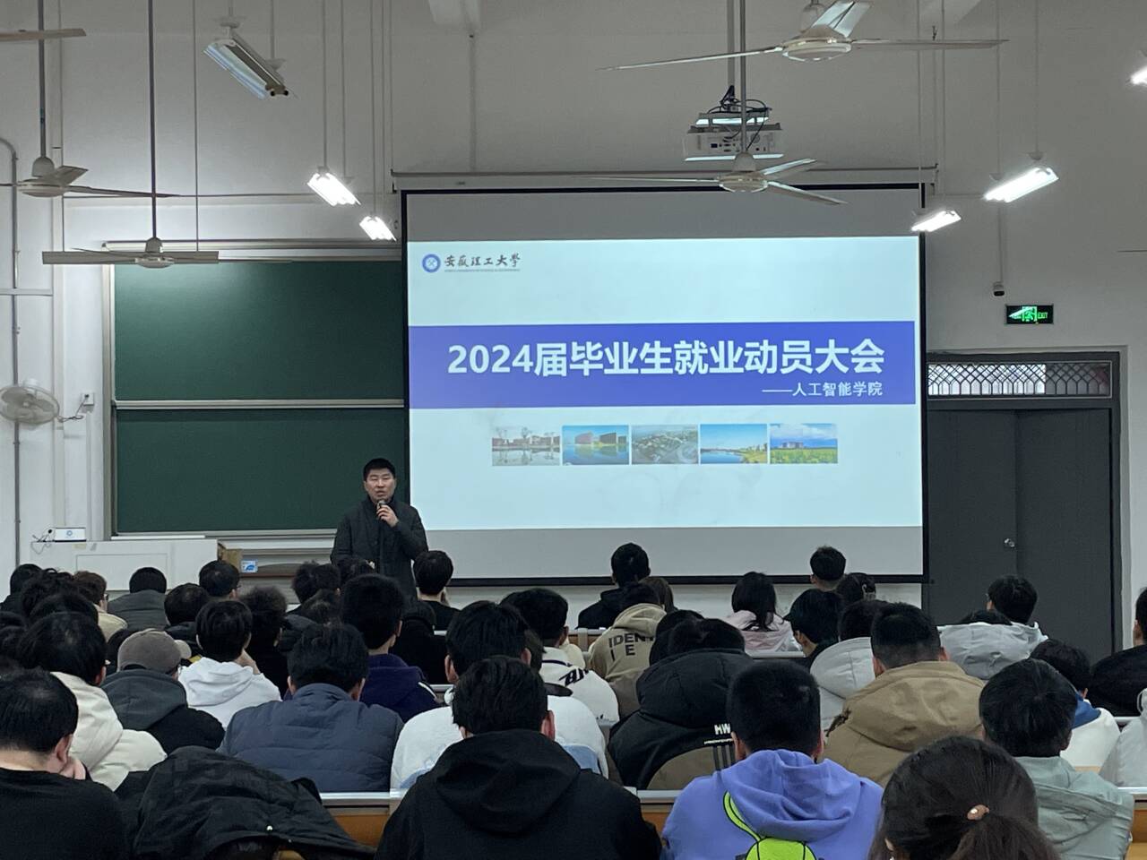 为进一步帮助学生树立正确就业观念、认清就业形势、把握就业机会,提高就业积极性和主动性,3月15日下午,人工智能学院在天工301教室召开主题为“用心护航,‘职’面未来”的2024届毕业生就业动员大会。会议旨在为即将毕业的学生提供全面的就业指导,确保他们能够顺利过渡到职场,成为人工智能领域的优秀人才。