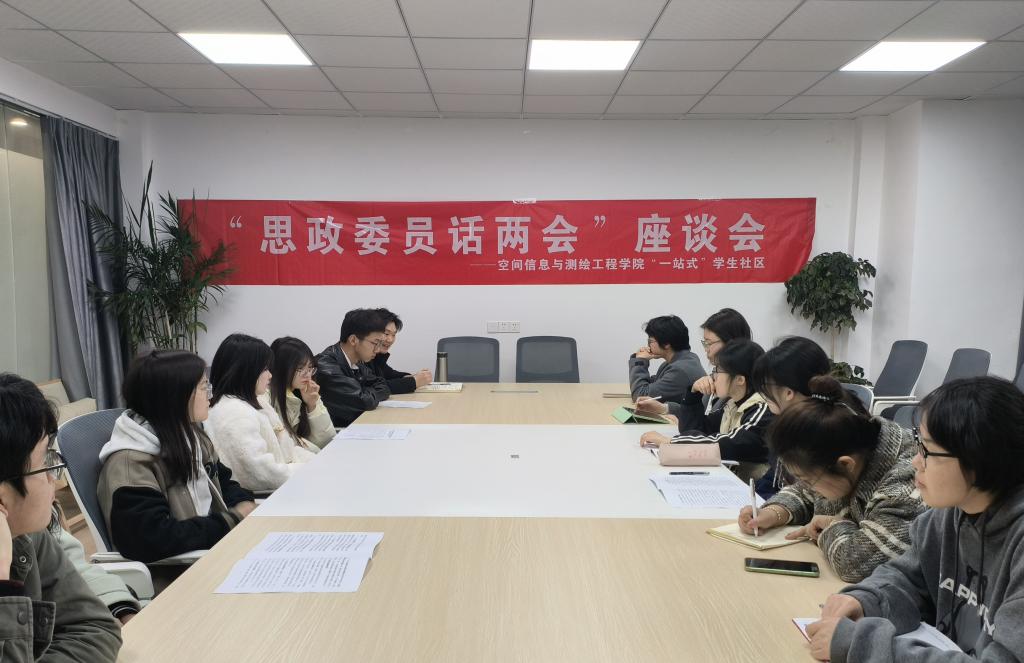 为深入学习贯彻全国两会精神,提高大学生思想政治素养,激发同学们的责任感和使命感,3月14日晚,空间信息与测绘工程学院在校“一站式”学生社区会议室召开全国两会精神学习会,学院辅导员、班级思政委员等20余人参加会议。