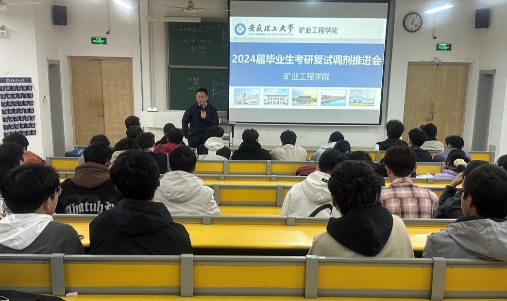 为扎实推进2024届毕业生考研工作,3月19日晚,矿业学院在天工203教室召开2024届毕业生考研复试与调剂推进会。学院副院长殷志强、矿业学院和安全学院相关辅导员参加了会议。
