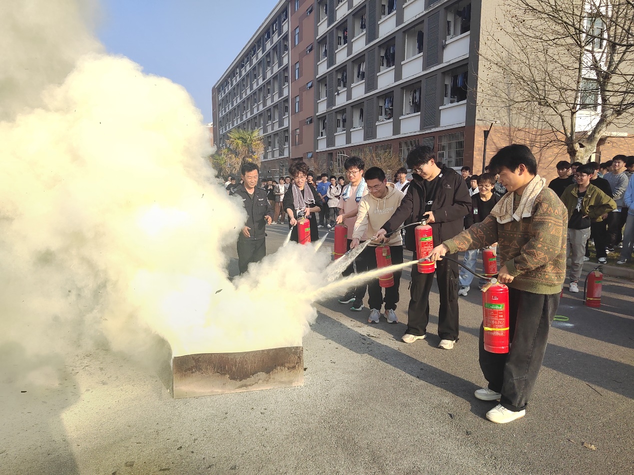 防火逃生应急演练结束后,消防科彭广峰老师现场为全体师生开展了干粉灭火器材的使用培训,部分学生代表进行了实际操作演练,掌握了消防器材的使用要领。