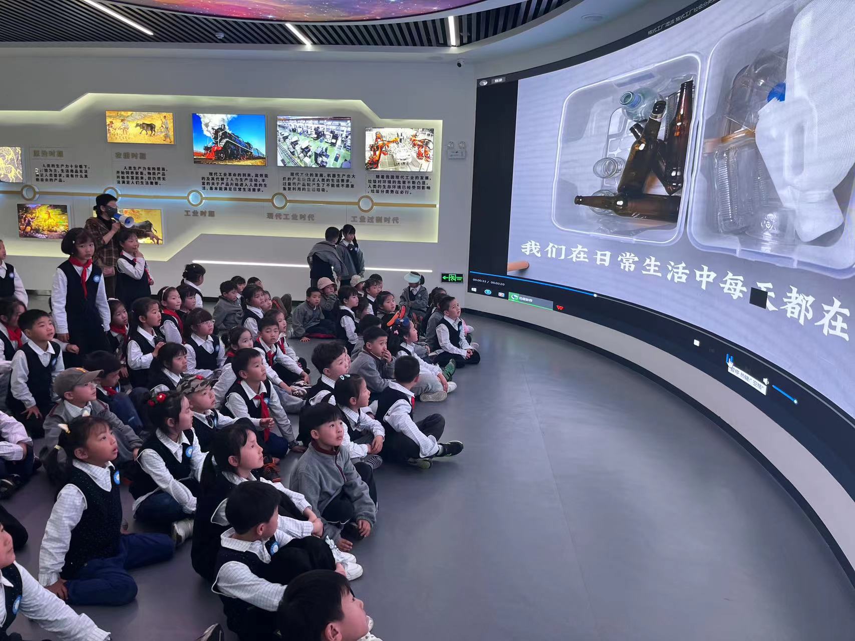 在公园生活垃圾分类中心,讲解员深情并茂地向大家介绍了垃圾处理的全过程,同学们现场参加了“互动体验”和“游戏”,观看了沉浸式3D视频等,掌握了更多垃圾分类的知识,将环保理念深深地记在了心里。