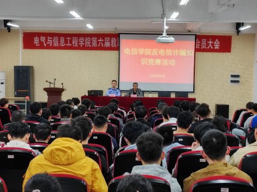 为深入贯彻落实习近平总书记对打击治理电信网络诈骗犯罪工作的重要指示精神,不断扩大“识诈反诈”工作覆盖面,切实增强在校学生“识诈反诈”意识和能力,4月2日上午,电气与信息工程学院第一届大学生反电诈知识竞赛在励行楼B112报告厅成功举办。学院党委书记徐关怀、淮南市公安局山南分局反电诈专家王远警官、学院全体专兼职辅导员及全院各班级主要学生干部150余人参加反电诈专题竞赛活动。
