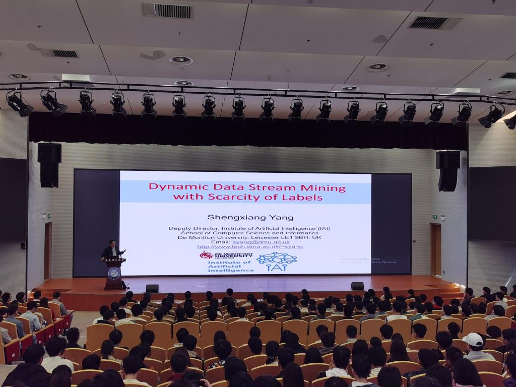 4月9日上午,应科研部和人工智能学院邀请,英国德蒙福特大学计算机科学与信息学院杨圣祥教授、中国矿业大学(北京)机械与电气工程学院郭一楠教授在舜耕会堂为我校师生分别作题为“Dynamic Data Stream Mining with Scarcity of Labels”“知识引导动态多目标进化优化”的学术报告,学校师生近450人参加了本次学术报告。报告会由人工智能学院执行院长李长河主持。