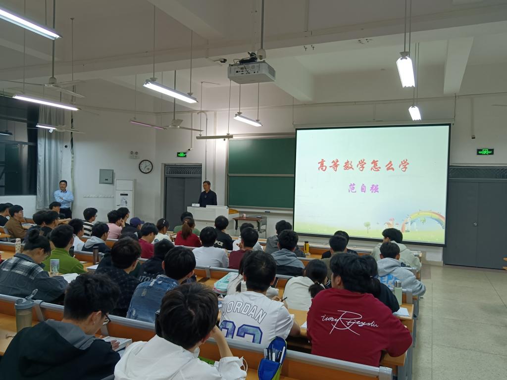 讲座中,范自强教授结合多年来的教学实践与经验,围绕“为何学”“为何难”“学什么”“怎么学”等问题,讲解由浅入深,层次分明。他指出,同学们要基于大学数学“精确性、抽象性、技巧性”特点开展有目的的学习,强调了课前预习、学透教材、时常复习、重视证明的重要性,还与同学们分享了一个学习公式:学好高数=基本概念“透”+基本定理“牢”+基本常识“记”+基本题型“熟”。