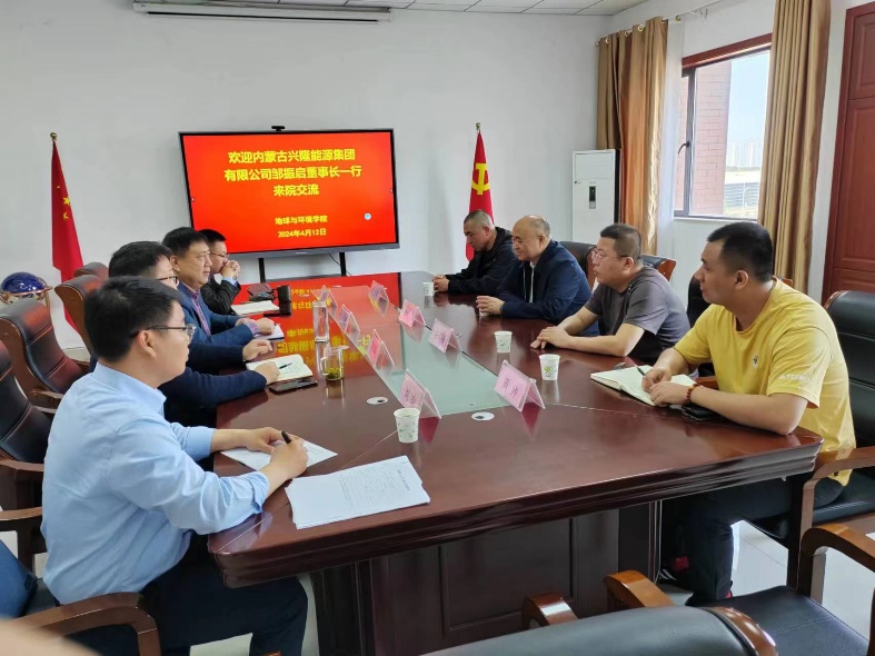 4月12日,内蒙古兴隆能源集团有限公司董事长邹振启一行来地球与环境学院交流,学院院长刘启蒙、副院长鲁海峰、矿井水害综合防治煤炭行业工程研究中心副主任吕玉广教授参加交流会。