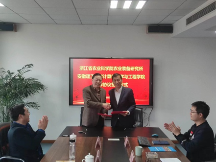 计算机学院走访组先后走访了浙江省农业科学院农业装备研究所、塔塔信息技术(杭州)有限公司、浙江鲜达科技有限公司。在浙江农科院装备研究所交流会上,王永祥介绍了安徽理工大学的办学特色以及计算机学院人才培养基本情况,葛斌围绕学院师资力量、学科建设及课题研究等内容进行了汇报。装备所负责人介绍了该所在农业装备技术研发等方面的进展情况,并表示双方在智慧农业研究以及人才联合培养方面有广阔的合作前景。会上,王永祥代表学院与装备所签订了合作协议。