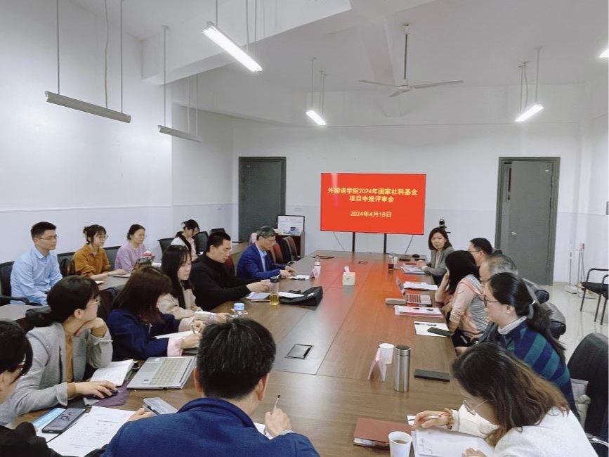 为进一步推进外国语学院国家社科基金项目组织申报工作,提高项目申报质量,4月18日下午,外国语学院在学院B203会议室召开2024年度国家社科基金项目申报评审研讨会。会议邀请南京大学外国语学院杨金才教授担任评议专家,会议由副院长周宁主持,校科研部、外国语学院申报老师参加会议。