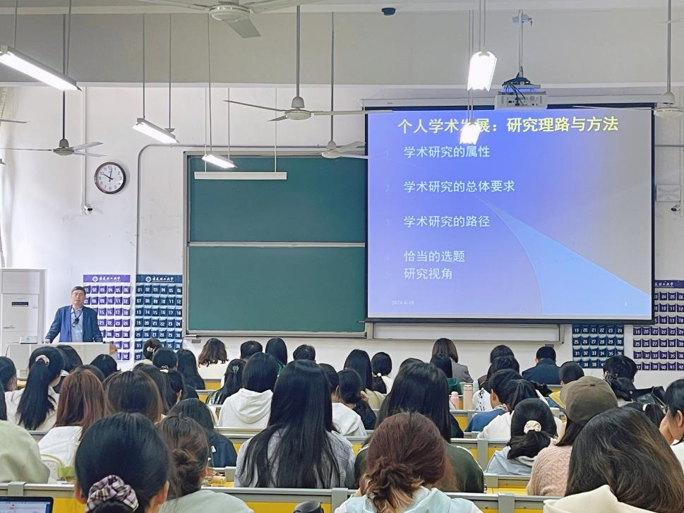 杨金才教授在讲座中重点介绍了学术研究的属性、学术研究的总体要求、学术研究的路径、恰当的选题和研究视角等内容。杨金才教授提出一篇合格的学术论文往往具有较好的学术含量和宽广的理论视野,有丰富的知识信息,严密的论证和充分的论据,讲究一定的学术规范。