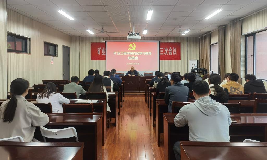 4月19日下午,矿业工程学院在宁远楼A410会议室召开党纪学习教育动员部署会,学院党委委员、各党支部书记(委员)、各办公室工作人员参加了会议,学院党委书记盛鹏飞主持会议。