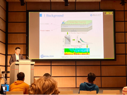 此次会议吸引了来自全球各地10000余名地球科学领域专家学者、工程技术人员和参展商的参与。席超强老师作题为《Improved spatial autocorrelation method for dispersion imaging of ambient seismic noise》的学术报告,引起与会专家关注。我校教师分别就各自研究领域与参会专家进行深入探讨,展示了学校在地球物理领域的最新学术成果,并与德国慕尼黑大学、卡尔斯鲁厄理工学院的专家学者就来校开展学术交流进行商谈。