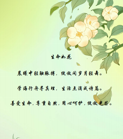 在“三月至,笔墨行”的情寄三行诗比赛中,全校学生踊跃参与,参赛作品采用细腻的笔触和丰富的想象力,描绘了对生命的热爱和对美好生活的向往,展现了我校学生积极向上的精神风貌。