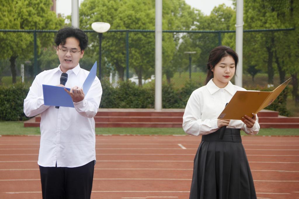 7点整,迈着整齐划一的步伐,国旗护卫队的队员们隆重登场,他们步履铿锵、英姿飒爽,护送着鲜艳的五星红旗缓缓走向升旗台。随着庄严的国歌声响起,鲜艳的五星红旗冉冉上升,全体师生肃立,向国旗行注目礼,全体师生在齐唱国歌声中表达了对祖国的崇敬之情,浓浓的爱国之情和民族自豪感悠然而生。计算机22-2班陈佳丽、物联网23-1班郑少阳朗诵《青春中国》,道出了青年学子对祖国的热爱和强烈的民族自豪感和自信心,也表达了青年大学生为祖国奉献青春热血的决心和担当。