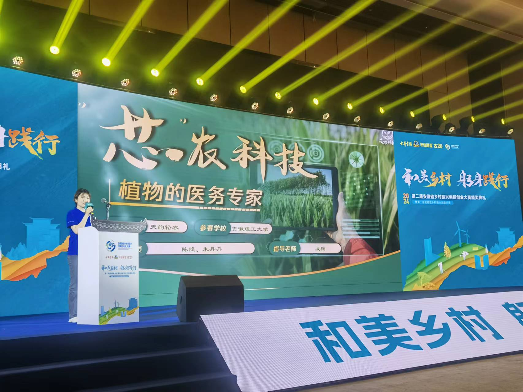 颁奖典礼对第二届安徽省乡村振兴创新创业大赛获奖个人和单位进行了表彰,我校参赛作品经过多轮评选,获得一等奖5项、二等奖12项、三等奖16项和优秀奖12项的佳绩,庞冬冬、戚翔两位教师获评大赛“优秀指导老师”,学校荣获“优秀组织奖”。朱丹丹同学参加了大赛优秀作品成果路演活动。