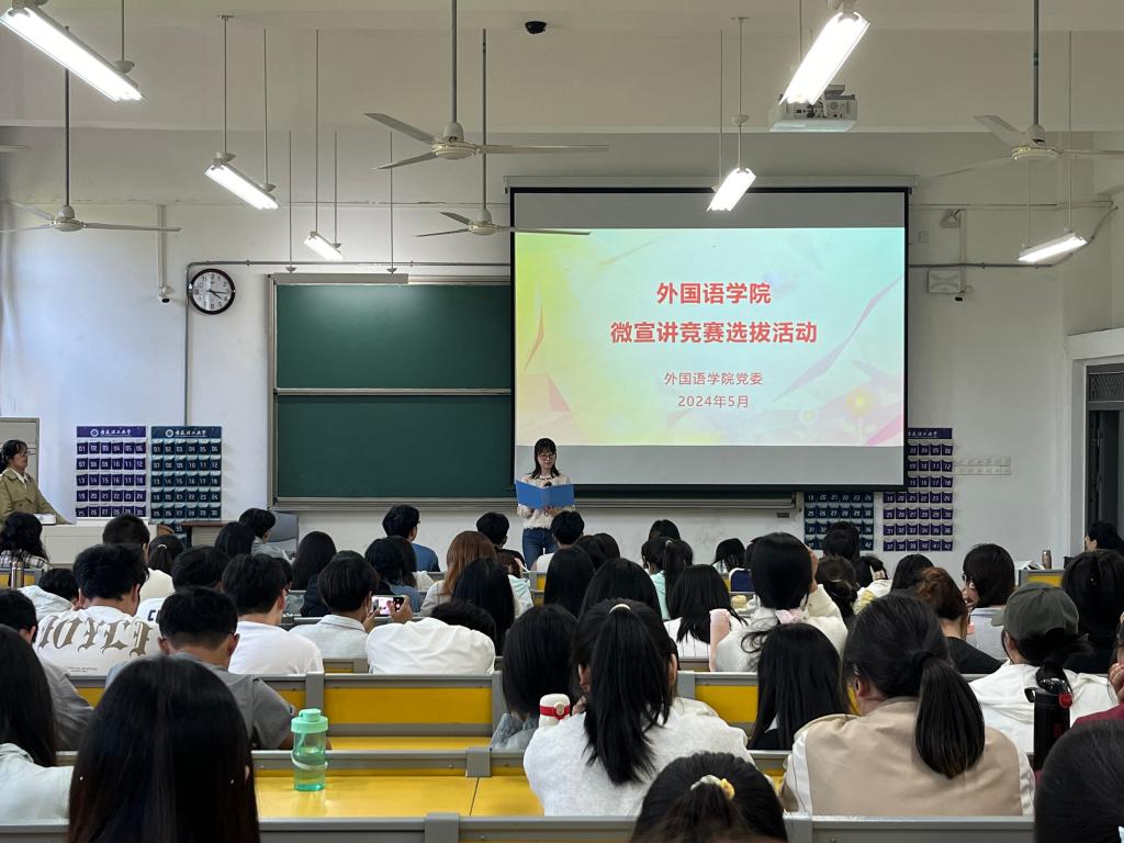 5月8日,外国语学院在明理北112、明理南112、明理北109教室分场次举办微宣讲竞赛选拔活动,学院全体学生分别参加了宣讲活动。