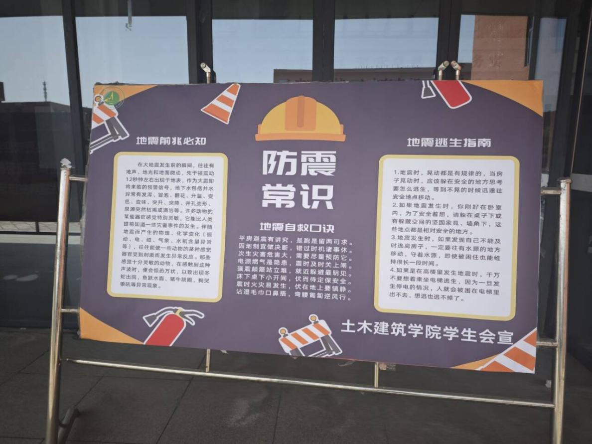 广泛宣传,营造氛围。5月6日至10日,学院采取线上+线下的方式,通过宣传展板、宣传海报、转发短视频、召开主题班会等方式,向学生进行安全宣传教育,营造了学习防灾减灾知识的浓厚氛围。